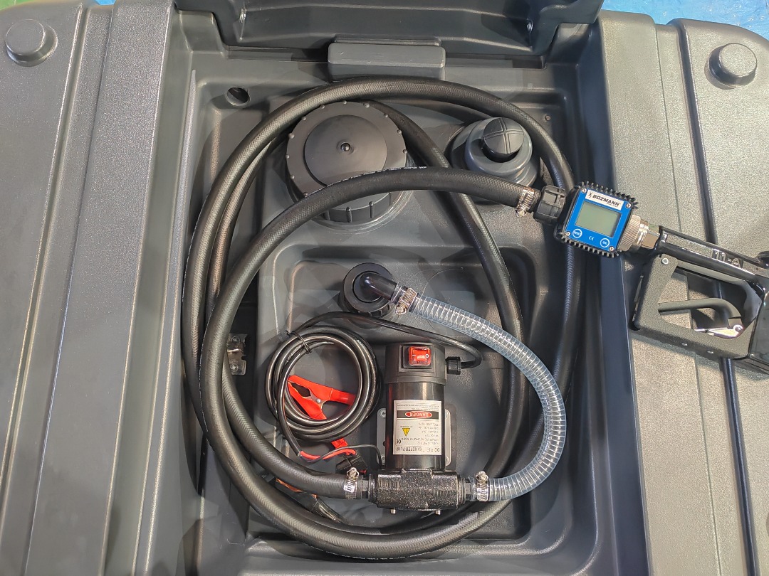 Estanque robusto y compacto de 400 litros, ideal para el transporte seguro de líquidos en terreno. Equipado con bomba de 12 V, pistola automática, medidor de flujo y manguera de entrega con conector giratorio. Diseño resistente, fácil de usar y compatible con uso agrícola, industrial o de construcción.