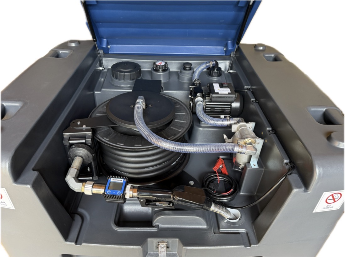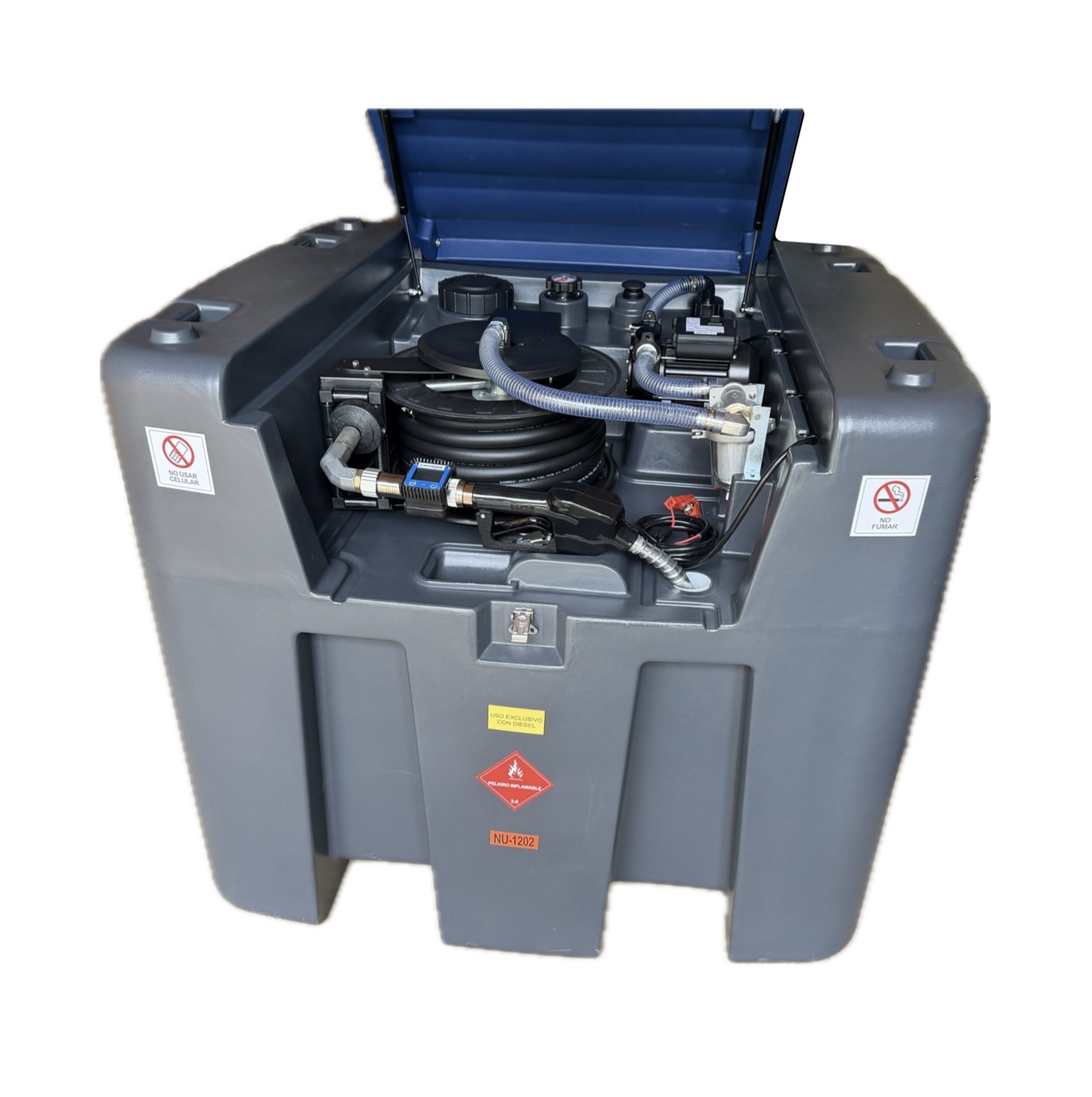Estanque robusto y compacto de 980 litros, ideal para el transporte seguro en terreno. Equipado con bomba de 12 V, pistola automática con medidor de flujo, indicador de nivel y carrete con 10 m de manguera. Diseño resistente, fácil de usar y compatible con uso agrícola, industrial o de construcción.